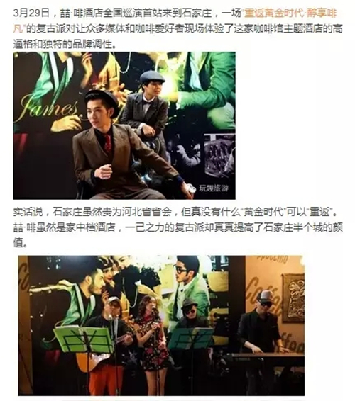 喆·啡酒店石家庄火车站店的开业仪式更注重人文格调的传播,此次复古派对让人眼前一亮,使喆·啡酒店的品牌形象更为生动立体。一起来看看媒体朋友提供的现场精彩花絮:
